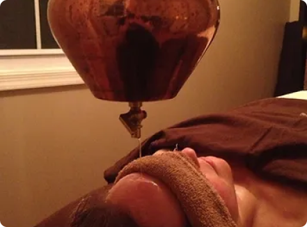 A gentle stream of warm herbalized oil is continuously poured onto the forehead from a copper vessel. Shirodhara deeply stills the nervous system, quieting the mind, while increasing and improving cerebral circulation. It integrates brain function and creates brain wave coherence. After this occurs, energy, oxygen and nutrients can flow more freely to the brain.